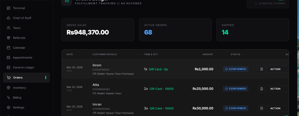 Your AI agent handles the entire multi-turn conversation. It checks stock levels, collects delivery addresses, automates Cash-On-Delivery (COD) verification, and confirms payments natively in chat. Watch the bot intercept a COD order instantly.